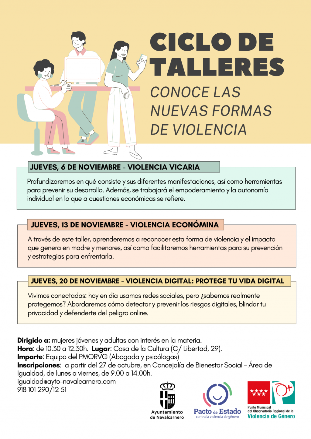 Inscripciones: A partir del 27 de octubre, en Concejalía de Bienestar Social – Área de Igualdad, de lunes a viernes, de 9 a 14 horas.