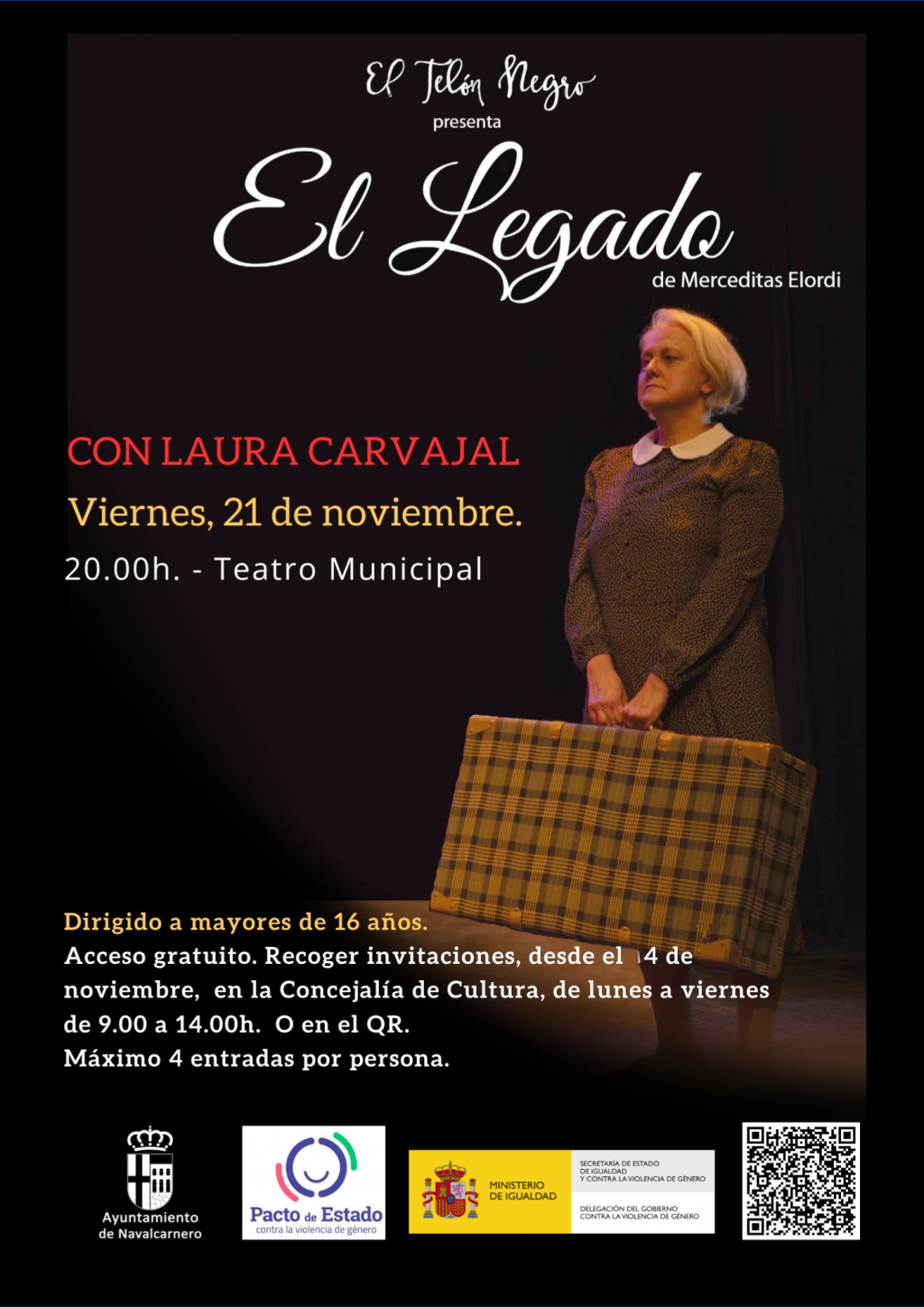 Acceso gratuito. Recoger invitaciones, desde el 4 de noviembre, en la Concejalía de Cultura, de lunes a viernes de 9 a 14 horas. O en el QR