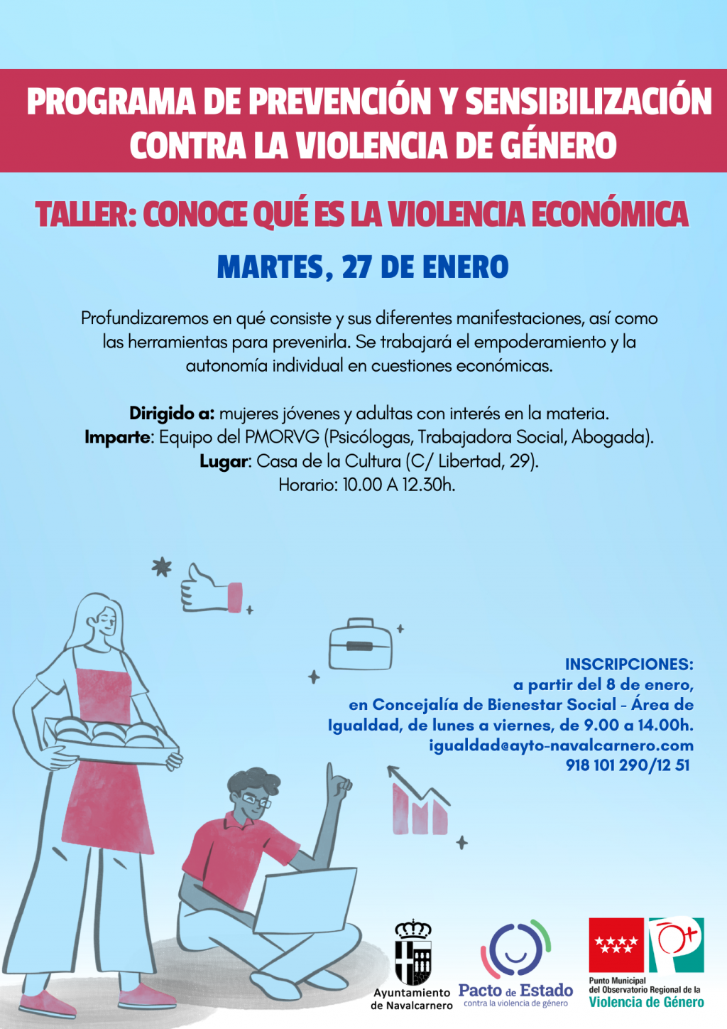 Inscripciones: A partir del 8 de enero, en Concejalía de Bienestar Social – Área de Igualdad, de lunes a viernes, de 9 a 14 horas.