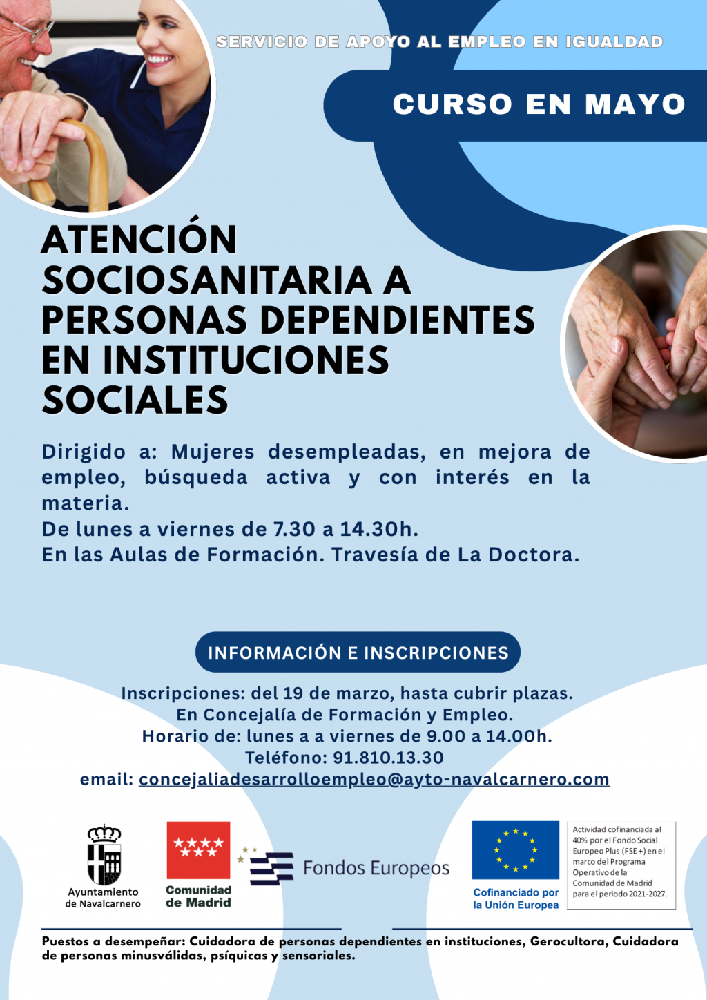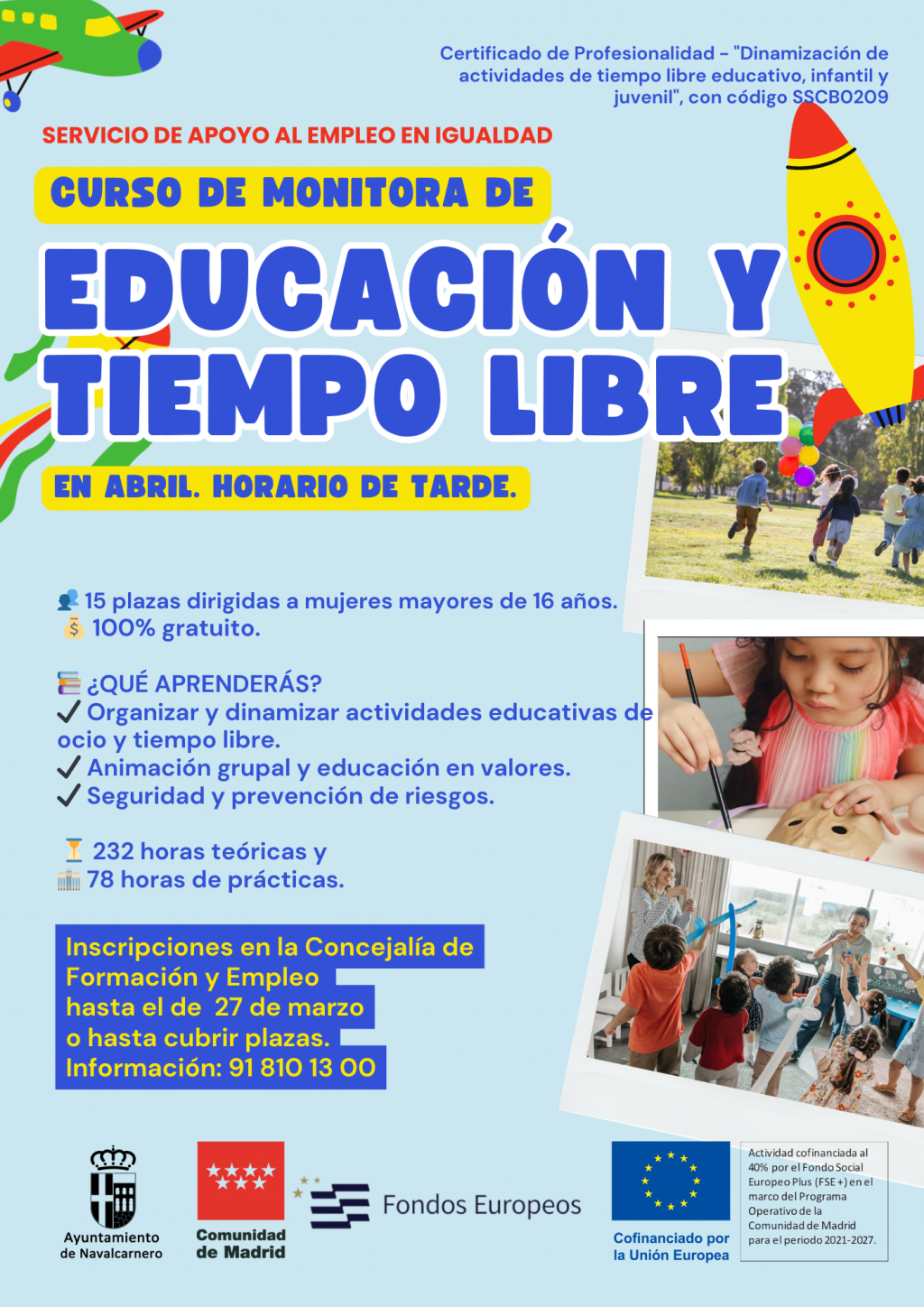 ”Actividad cofinanciada al 40% por el Programa FSE + 2021-2027 de la Comunidad de Madrid y desarrollada en el marco del Convenio de colaboración entre la Comunidad de Madrid y la Entidad Local para la realización de actuaciones contra la violencia de género y para la promoción de la igualdad de oportunidades entre mujeres y hombres.”