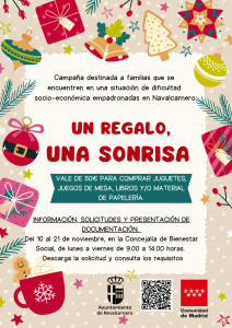 Plazo de solicitudes: del 10 de noviembre al 23 de noviembre, de forma presencial en la Concejalía de Bienestar Social (Primera Planta Ayuntamiento). En horario de 9 a 14 horas.