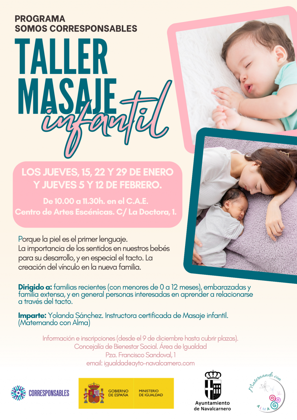 Dirigido a: Familias recientes (con menores de 0 a 12 meses), embarazadas y familia extensa, y en general personas interesadas en relacionarse a través del tacto.