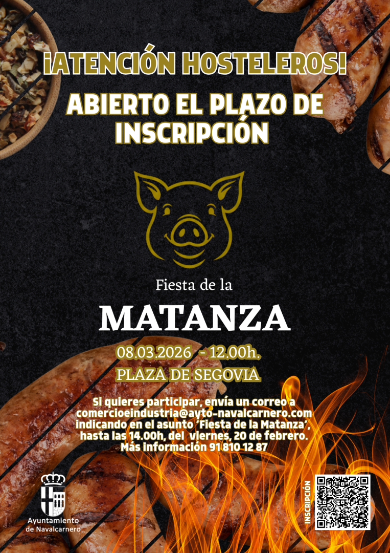 El domingo 8 de marzo se celebrará en la Plaza de Segovia a partir de las 12.00h. una nueva edición de la Fiesta de la matanza, en la que los hosteleros participantes podrán ofrecer tapas de matanza acompañadas preferiblemente de vino de Navalcarnero (o caña de cerveza) al precio único de 4€.